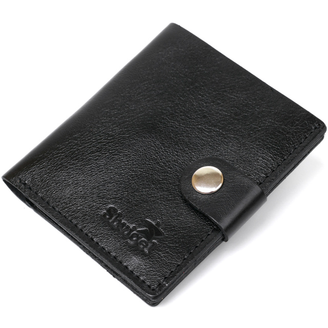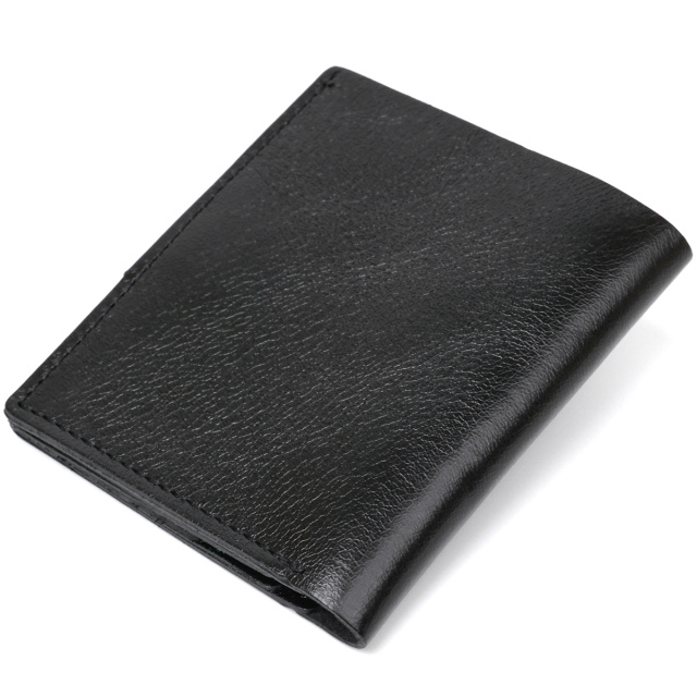 Классическое мужское портмоне в универсальном черном цвете, которое легко поместится в сумке любого размера или в кармане. Выполнено изделие из натуральной кожи высокого класса и улучшенной прочности. Внутри есть отделение для купюр, слоты для кредитных и визитных карточек и небольшая монетница на кнопке. Фактура – гладкая с легким отливом.