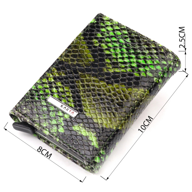 Функциональный картхолдер из лакированной фактурной кожи, с тиснением под змею, предназначен для хранения банковских и дисконтных карт и небольшого количества наличных. Имеет лаконичный дизайн, отлично ложится в руку, помещается в карман, а также в любую сумку. Кожа мягкая, приятная на ощупь. Механизм работает надежно и удобен в использовании; карточки хорошо закреплены в аксессуаре. Отличная идея для подарка близкому человеку.