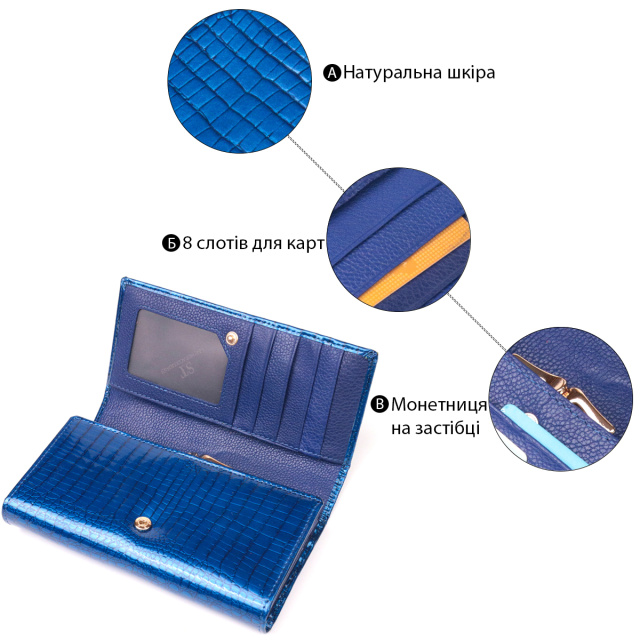 Практичный кошелек-визитница для деловых и современных женщин. Имеет красивый и строгий дизайн и отличается особой практичностью. Изготовлено данное изделие из натуральной качественной кожи с отменными свойствами и характеристиками. Наполнение представлено вместительными отделениями и карманами для Ваших ценностей. Визитница расположена на внешней стороне, закрывается кошелек на клапаном на кнопку. Упакован кошелек в белую картонную коробку с логотипом производителя.