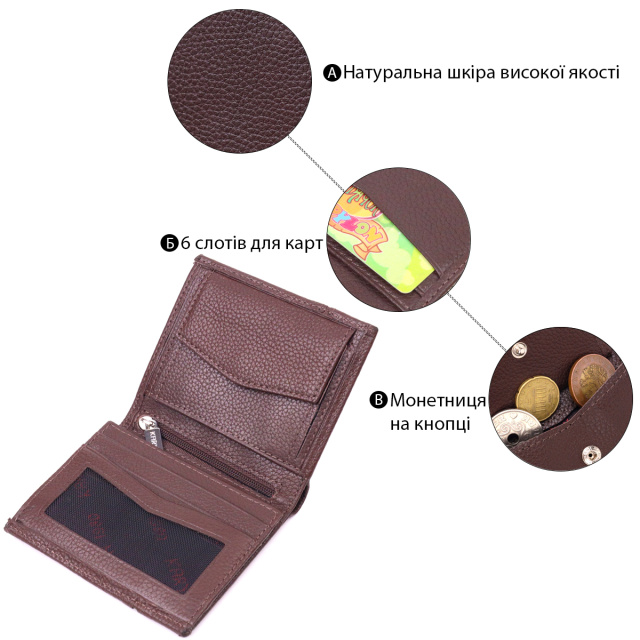Вместительный мужской кошелек, из натуральной кожи, в красивом коричневом цвете. Внутри находится два отделения для купюр, шесть отделений для карт, три скрытых кармана и монетница на кнопке. Закрывается кошелек в два сложения без застежки. Изделия из натуральной кожи всегда будут отличным подарком для близкого человека.