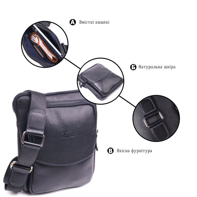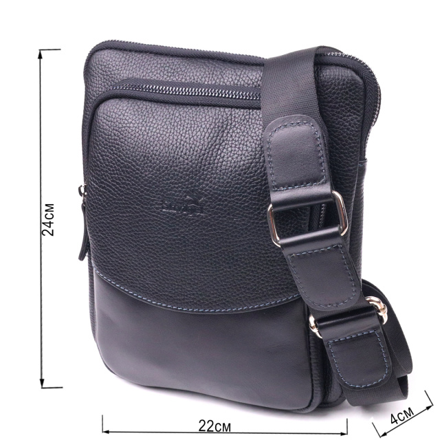 Практичная мужская сумка-планшет, из натуральной кожи, в комбинации двух фактур, гладкой и зернистой. Аксессуар имеет два основных отделения на молниях, а также три внутренних небольших кармашка, два из которых также на молниях. Фурнитура в изделии представлена в темном серебристом цвете. Отличный подарок для стильного, современного мужчины.