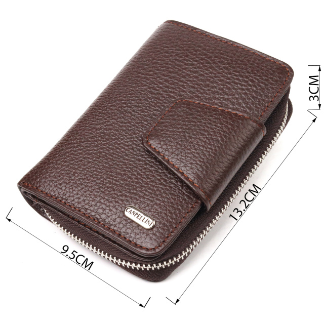 Стильный женский кошелек вертикального типа из натуральной кожи. Аксессуар имеет отделение для купюр, восемь ячеек для карточек (две под сеточкой), два прилегающих кармана и два кармана на молниях. Закрывается аксессуар в два сложения хлястиком на магнит. Приобретая кожаный аксессуар этой фирмы себе или на подарок, будьте уверены, что он будет радовать глаз не один год.