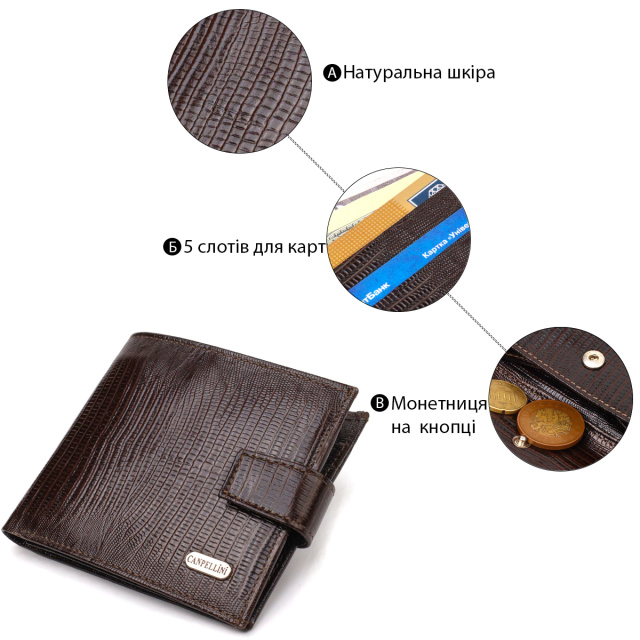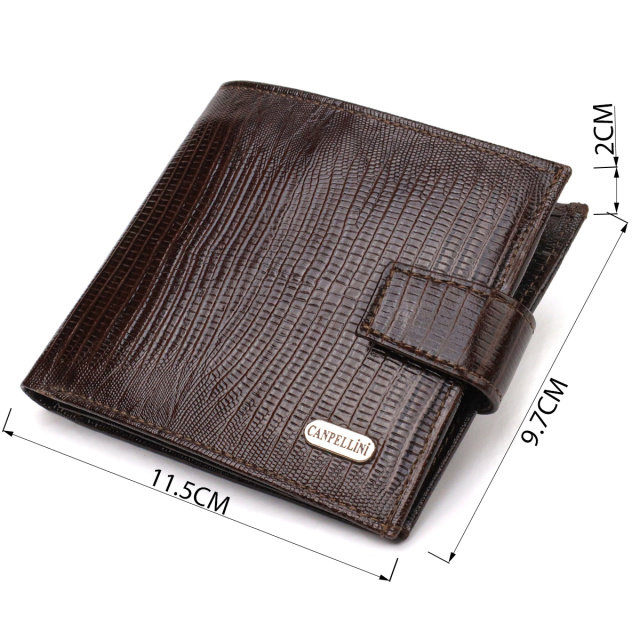 Мужской современный кошелек горизонтального формата из натуральной кожи с тиснением CANPELLINI 21757 Коричневый
