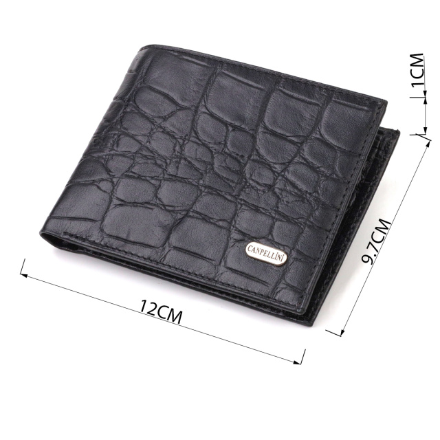 Мужской бумажник без застежки горизонтального формата из натуральной кожи с тиснением под крокодила CANPELLINI 21766 Черный