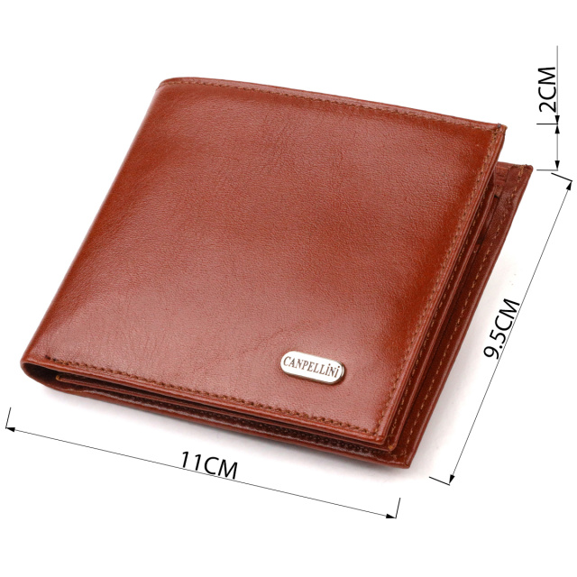 Практичный мужской кошелек из натуральной гладкой кожи. Аксессуар имеет одно основное отделение с тканевой перегородкой в которое помещаются купюры всех номиналов, шесть карманов для карточек, карман под сеточкой для пропуска, один скрытый карман и монетницу. Закрывается аксессуар пополам, без застежки. На лицевой стороне, в правом нижнем углу металлический логотип компании производителя. Приобретая кожаный аксессуар этой фирмы, себе или на подарок, будьте уверены, что он прослужит Вам не один год.