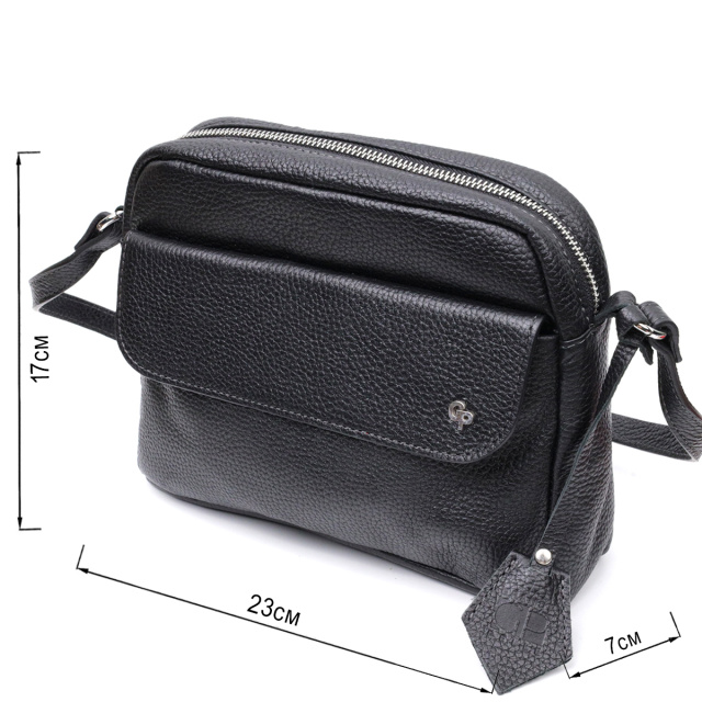 Трендовая женская сумка через плече, на каждый день. Аксессуар состоит из основного отделения, что закрывается на молнию, кармана открытого типа и кармана на молнии внутри, внешнего кармана на молнии, на тыльной стороне и накладного кармана на лицевой стороне, что закрывается клапаном на магниты. Выполнена из прочной и износостойкой натуральной кожи. Фурнитура серебряного цвета, регулируемый кожаный плечевой ремень. Упакована данная сумка в красивый фирменный чехол с ручками.