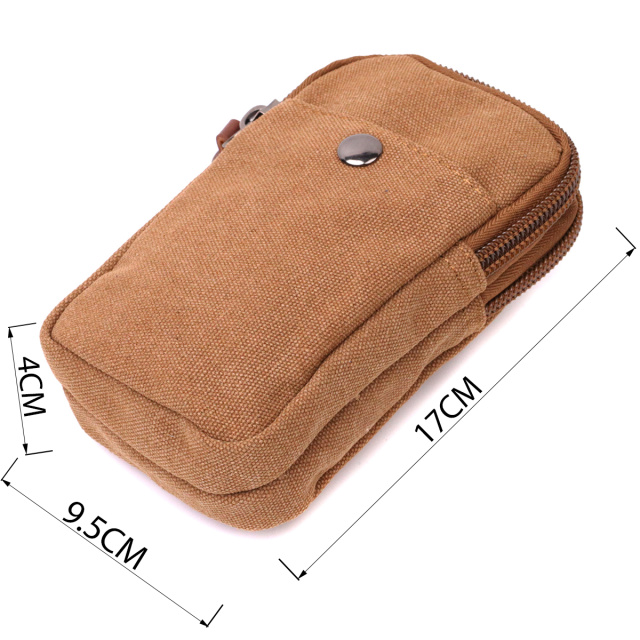 Добротная сумка-чехол на пояс с металлическим карабином из текстиля Vintage 22225 Коричневый