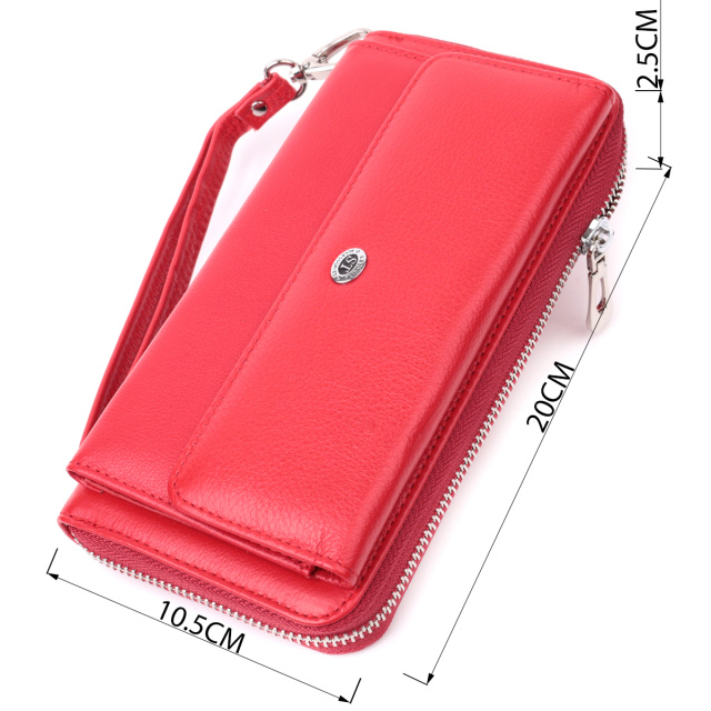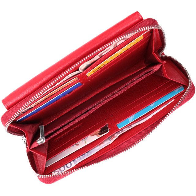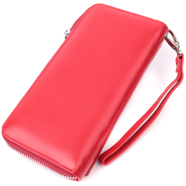 Яркий вместительный кошелек-клатч для женщин из натуральной кожи, в красивом красном цвете, с использованием добротного текстиля (внутренняя подкладка). Используется качественная фурнитура цвета серебра. Клатч в одно и тоже время, компактен и функционален, в него можно поместить свой телефон, чтоб не мешал в руках. Упакован в фирменную коробку белого цвета.