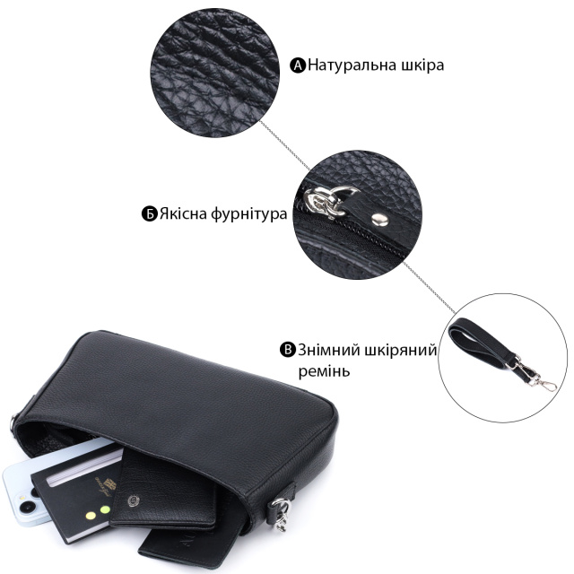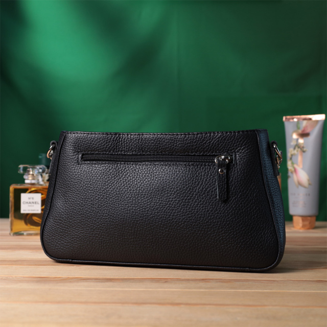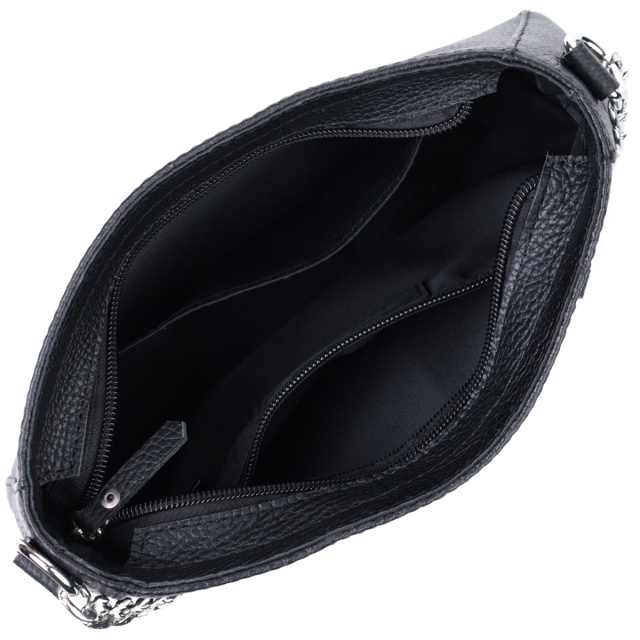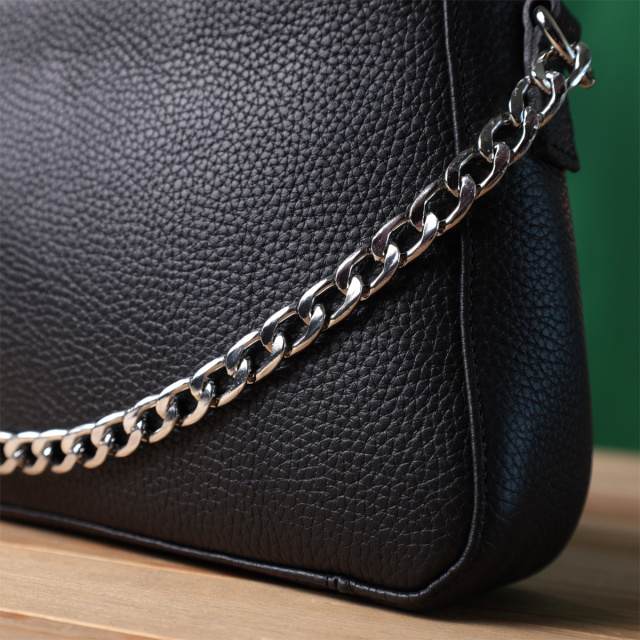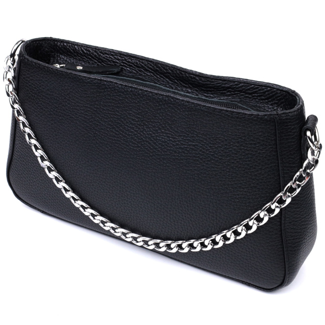 Представляем Вам трендовую сумку сезона, которая воплощает в себя элегантность и практичность. Такая сумка в модном мире имеет название - сумка багет. Цвет изделия – классический черный, фактура – зернистая не привередливая в уходе. Материал исполнения – натуральная мягкая кожа с высокими показателями износостойкости. Отличный вариант как на каждый день, так и на вечер. Ремешок цепочка придает ей блеска и нотку утонченности. Данная модель не только привлекательна снаружи, но и продуманная внутри, расположение и количество внутренних карманов позволит качественно организовать пространство внутри, чтобы все вещи лежали на своих местах. Модель изготовлена из качественных материалов, имеет твердое дно и хорошо держит форму.
