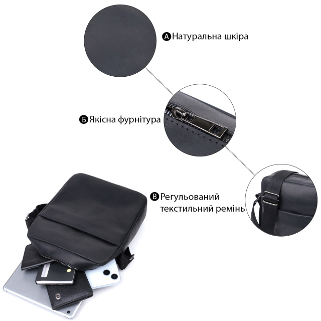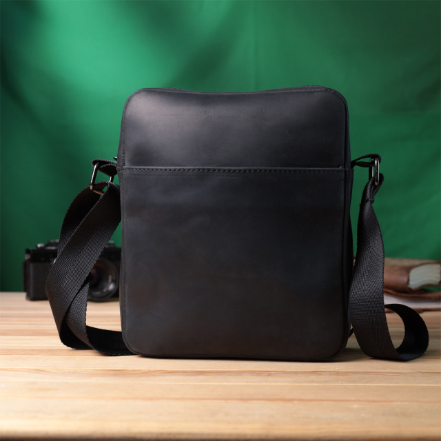 Интересная мужская сумка мессенджер из люксовой кожи Crazy Horse которая выглядит состаренной – вечный антикварный и винтажный вид. Она имеет гладкую матовую поверхность, не блестит, со временем через износ такая кожа будет царапаться и тереться, показывая изменение цветового тона, действительно отражающего винтаж. Фурнитура металлического цвета - стойкая не меняет свой цвет в процессе носки. Аксессуар отлично сочетается со всеми стилями в одежде и может стать отличным подарком на любой праздник.