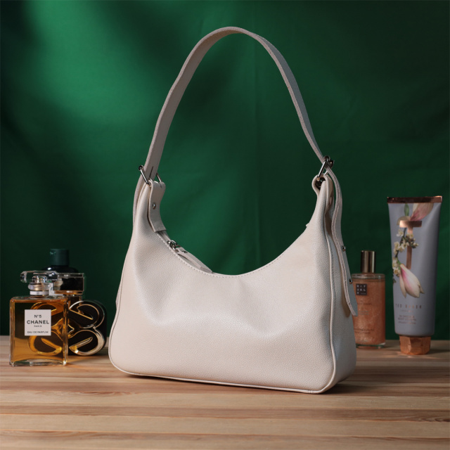Трендовая женская сумка для тех, кто любит красивый дизайн без лишних деталей. Такая сумка в модном мире имеет название - сумка багет. Это небольшая сумка с коротким ремнем, которую удобно носить под рукой, она обрела свою популярность благодаря своему универсальному дизайну и необычной форме. Цвет изделия – благородный бежевый, фактура – зернистая. Материал исполнения – натуральная мягкая кожа с высокими показателями качества. Отличный вариант сумки на каждый день, ведь она не только привлекательна снаружи, но и оснащена разумной системой внутренних отделений, что позволит продуманно и органично организовать пространство внутри.