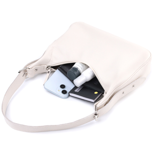 Сумка багет с регулируемым ремнем из натуральной кожи Shvigel 22831 Бежевая