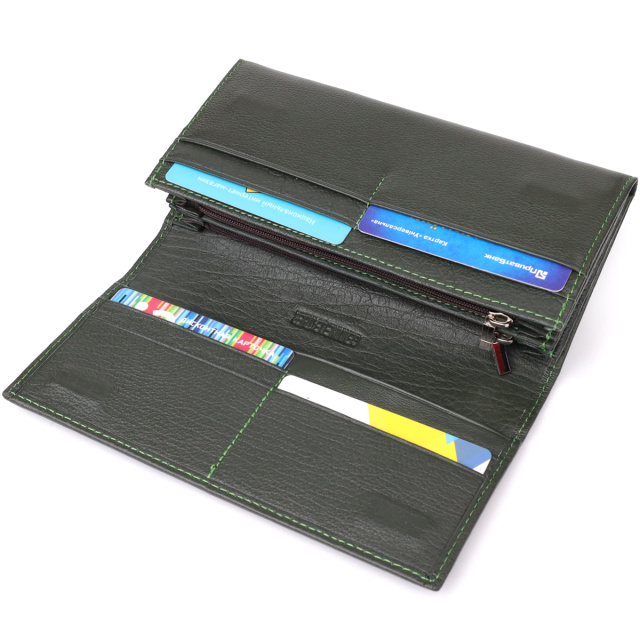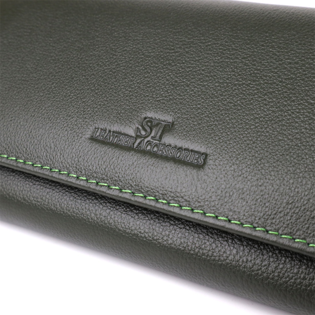 Горизонтальный кошелек у два сложения из натуральной кожи ST Leather 23067 Зеленый
