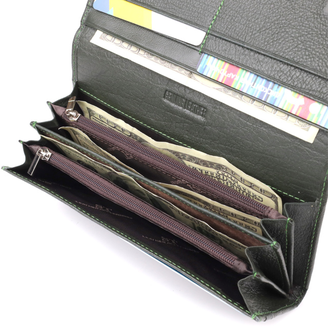 Материал: натуральная кожа; Цвет: зеленый; Размеры (ШхВхГ): 20,5х9,5х2,5 см; Страна производства: Китай. Особенности: - 4 отделения для...