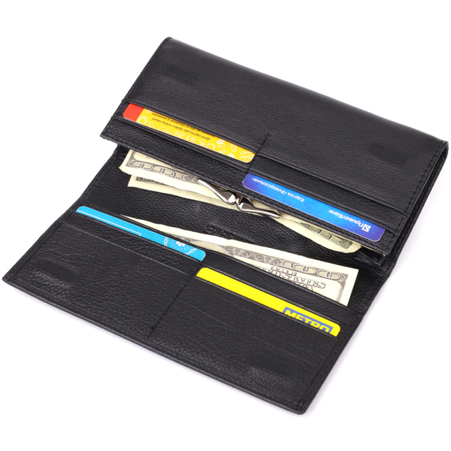 Красивое женское портмоне в два сложения из натуральной кожи премиум-класса. Элегантный и практичный аксессуар, который станет надежным спутником на каждый день. Изготовлен из высококачественной натуральной кожи, приятной на ощупь и устойчивой к износу. Функциональные особенности: три просторных отделения для купюр, карман на молнии во всю длину, восемь ячеек для пластиковых карт, скрытый внутренний карман, карман на металлической защелке для монет. Портмоне дополнено качественной фурнитурой, которая подчеркивает его стиль. Аксессуар упакован в фирменную белую картонную коробку — отличный выбор для подарка.