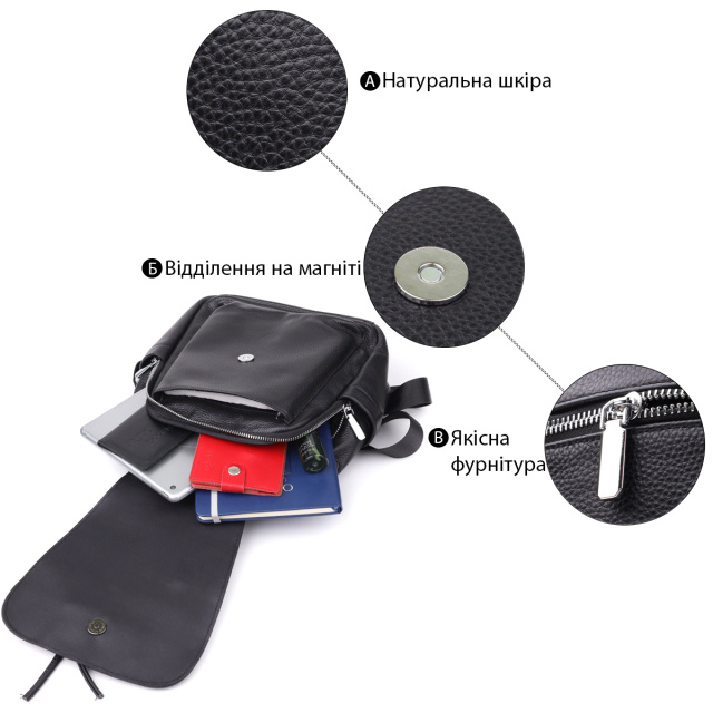 Цвет: черный; Материал: натуральная кожа высокого качества; Размер (ШхВхГ, см): 25х30х13см; Страна производитель: Китай. Бренд: Vintage....