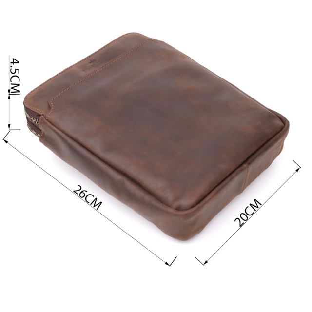 Мужская вертикальная сумка от украинского бренда SHVIGEL выполнена из натуральной винтажной кожи, которая со временем приобретает благородный налет и подчеркивает характер изделия. Компактные размеры и продуманная организация внутреннего пространства позволяют удобно разместить документы, планшет или личные вещи.