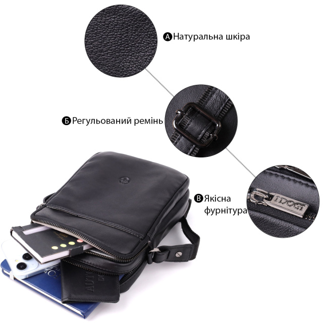 – функциональный формат мужской сумки с наплечным ремнём;