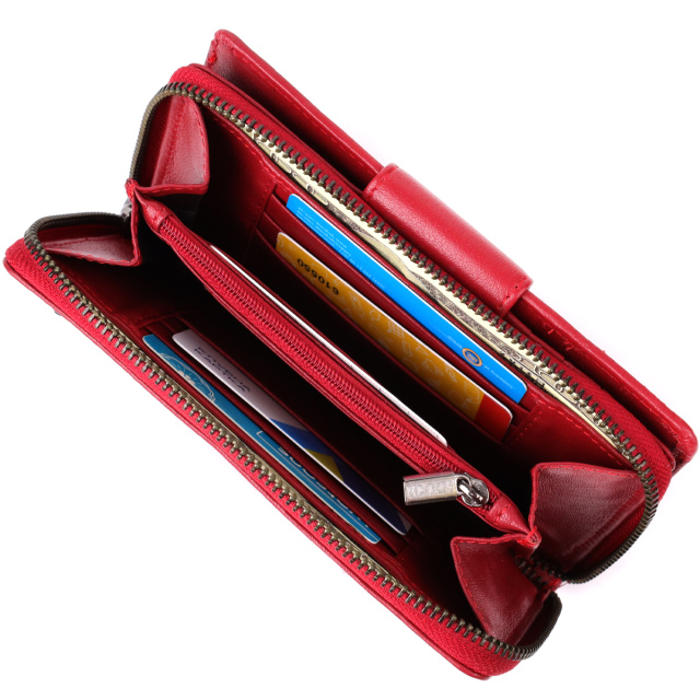 Яркое портмоне Tony Perotti красного цвета выполнено из натуральной телячьей кожи и отличается продуманной организацией внутреннего пространства. Модель рассчитана на хранение купюр в разложенном виде, что обеспечивает дополнительный комфорт в использовании. Качественная брендированная фурнитура подчёркивает премиальный уровень изделия, а классический дизайн делает портмоне универсальным аксессуаром и отличным подарком для женщины.