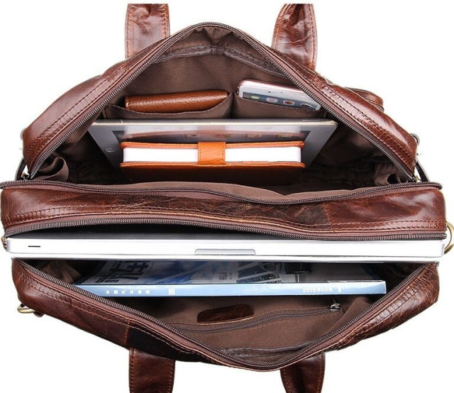 - два основных отделения, одно с прорезным карманом на молнии, одно с двумя накладными кармашками;