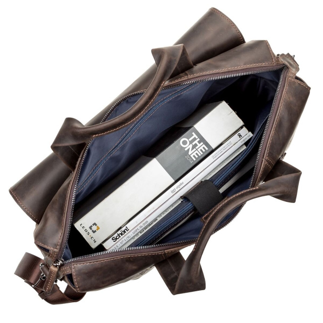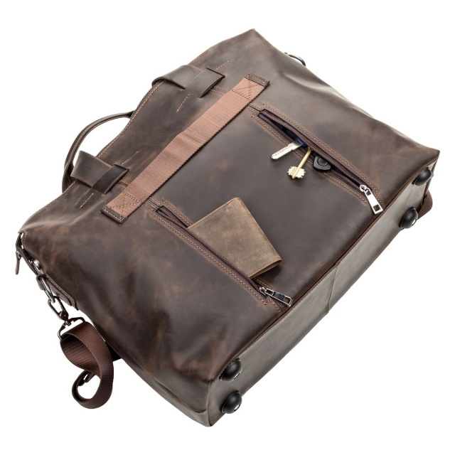 Вместительная дорожная сумка (мягкая) на двух ручках для людей, которые часто отправляются в деловые поездки. Аксессуар выполнен из натуральной винтажной кожи, характерными признаками которой, являются: неоднородность окраса и потертости, которые придают изделию изысканного, индивидуального вида. Цвет фурнитуры: темное серебро.