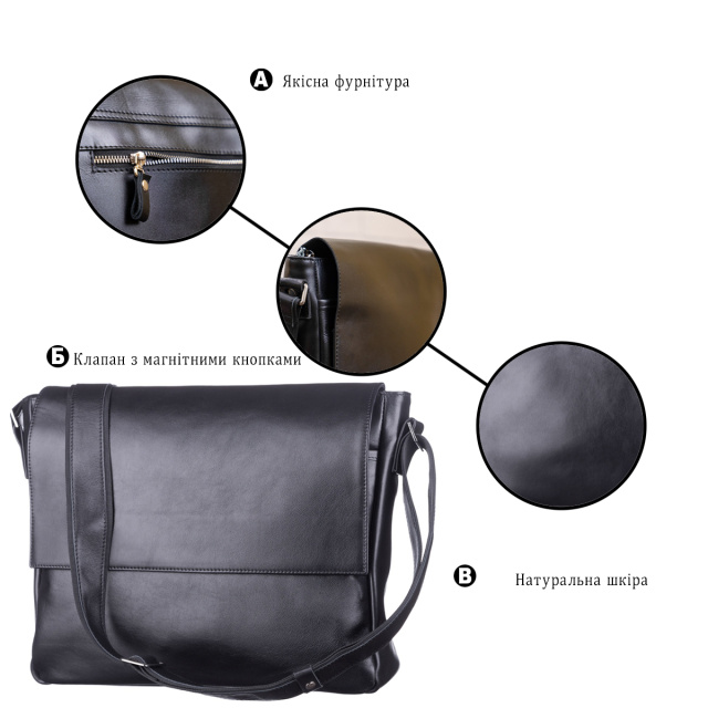 На задней стенке есть скрытый карман на застежке, который прикрывается кожей. Закрывается сумка с помощью клапана с магнитами. При открытии глубокий накладной карман.