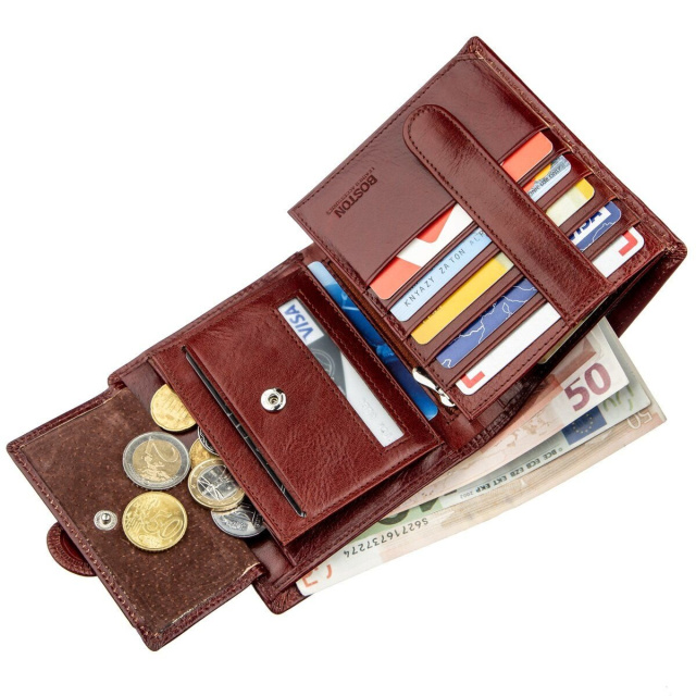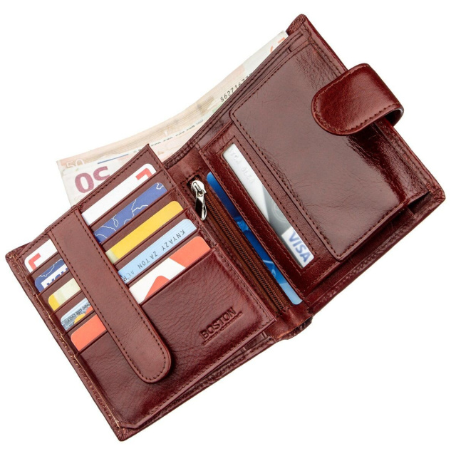 Отличный кожаный бумажник для настоящих мужчин в выдержанном и не вызывающем дизайне. Имеет стильный коричневый цвет с притягательным красным оттенком. Выполнен из высококачественного материала, поэтому непременно прослужит Вам очень долгое время. Бумажник также может похвастаться особой практичностью и неоспоримым удобством в процессе своей эксплуатации. Множество различных отделений обязательно пригодяться Вам в повседневной рутинной жизни. Поэтому покупайте данный бумажник для себя или на подарок близкому человеку. Упаковано изделие в фирменную твердую картонную коробку белого цвета.
