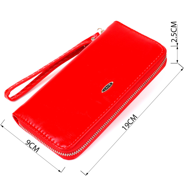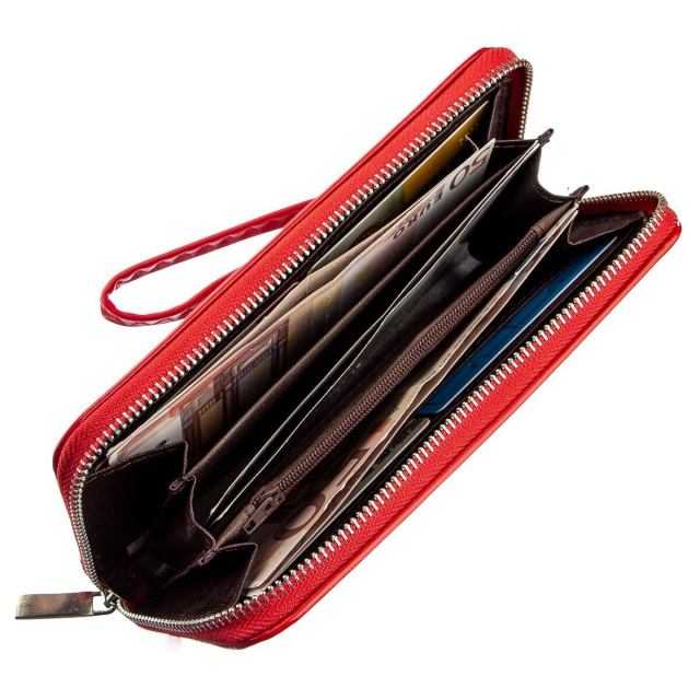 Тонкий кошелек на одну молнию яркого красного цвета. Аксессуар имеет просторные отделения для купюр, ячейки для карточек. Кошелек подойдет под любой образ и стиль. По краям прошит яркой красной строчкой в дизайн аксессуара. Такой кошелек будет прекрасным подарком для любой девушки и подойдет под любой образ. Внутри кошелька есть ремешок-петелька и ваш кошелек превращается в клатч, который вы можете взять с собой на вечеринку или другое важное событие.