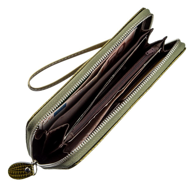 Лаковый кошелек хамелеон зеленого цвета из прочной экокожи принесет радость любой девушке. Модель имеет компактные размеры и легко поместится в дамскую сумочку. На внешней стороне аксессуара металлический логотип бренда. Аксессуар дополнен всем необходимым для каждой девушки: просторные отделения для купюр, слоты для кредиток и отделение на молнии. Также в комплекте к кошельку идет ручка из экокожи на запястье. С помощью такой ручки вы сможете носить ваш кошелек как клатч. Если вы выбираете подарок для близкого человека советуем присмотреться к нашему интернет-магазину. У нас вы найдете большой выбор, высокое качество и доступные цены.