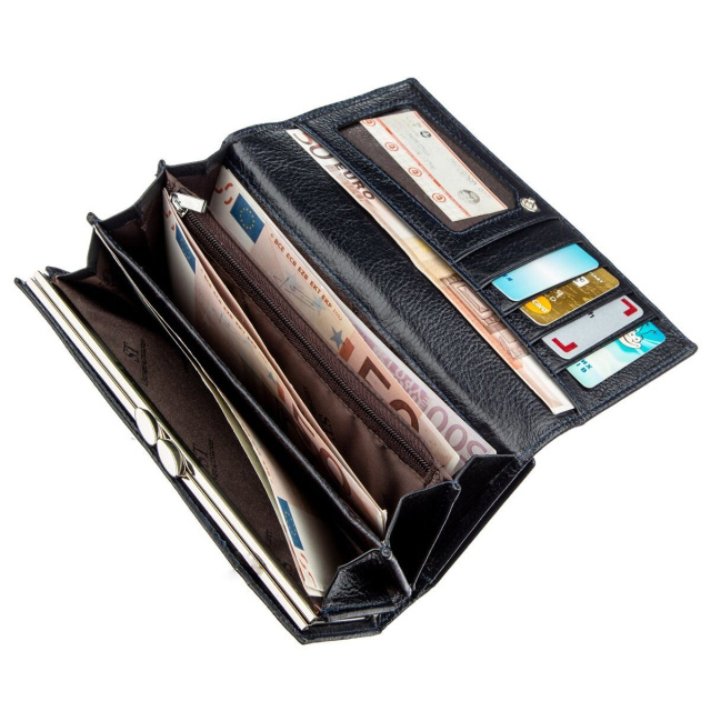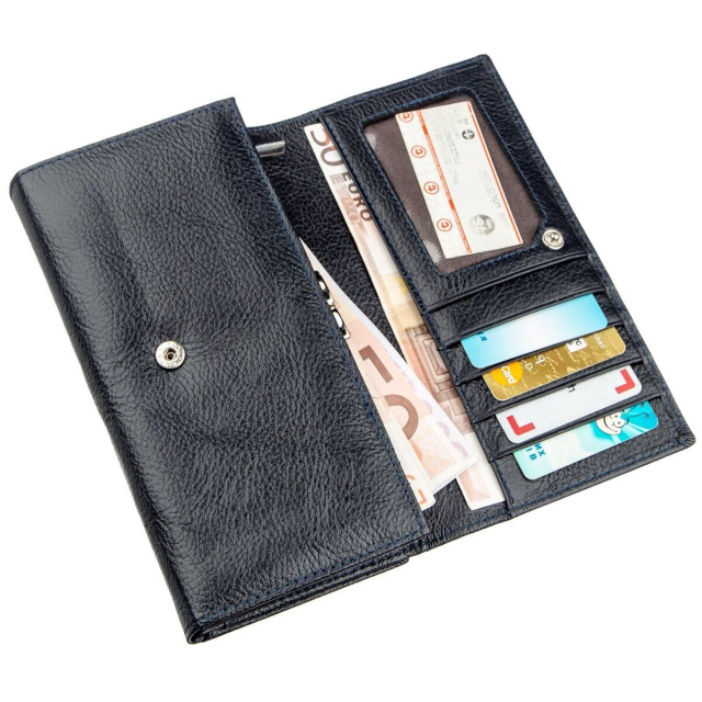 Многофункциональный кошелек-клатч для деловых женщин. Материал исполнения – высококачественная натуральная кожа с превосходными характеристиками. Имеет необычный темно-серый цвет с нотками синего, оттенок - матовый. Если Вы привыкли носить с собой много необходимых вещей, то данная модель Вам обязательно подойдет. Ведь в кошельке есть вместительные отделения для всех ценностей, в том числе для купюр, монет, фото, кредитных карточек, визиток и других мелочей. Данный клатч станет для Вас прекрасным приобретением или изумительным подарком для родного человека. Упаковано изделие в фирменную белую коробку с логотипом.