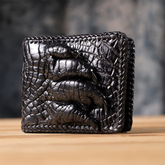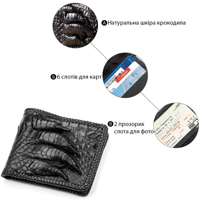 Портмоне из натуральной кожи крокодила. Изделие декорировано настоящей лапой крокодила, которая добавляет аксессуару оригинальности. В качестве дополнительной отделки по внешнему краю аксессуара сделана оплетка из гладкой кожи под цвет портмоне. Изделия из кожи крокодила всегда считались большой роскошью, так как в мире не так уж много компаний, которые занимаются выделкой такой кожи, поскольку этот процесс действительно чрезвычайно трудоемкий.