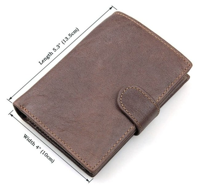 Оригинальный мужской кожаный бумажник коричневого цвета. Кошелек надежно прошит светло-коричневой нитью. Аксессуар удобно держать в руке, но в передний карман джинсов он навряд ли поместится. Кошелек упакован в текстильный пылезащитный мешочек белого цвета.
