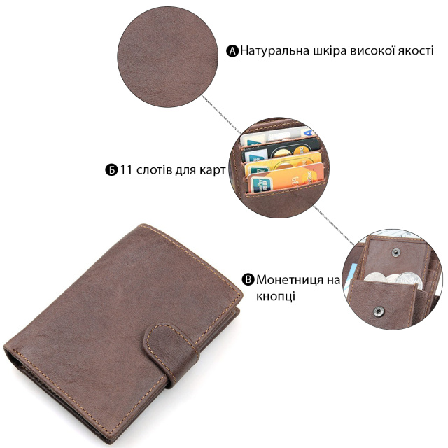 - 3 отделения для банкнот, одно из которых закрывается молнией;