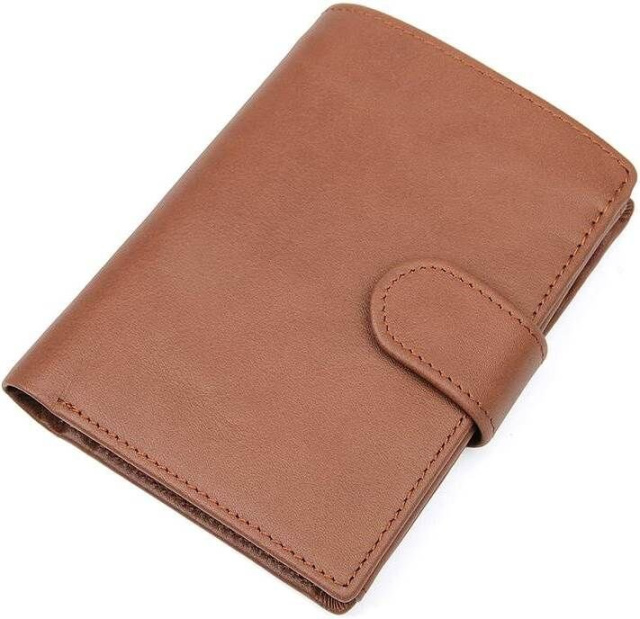 Вместительный мужской кожаный бумажник коричневого цвета. Кошелек надежно прошит светло-коричневой нитью. Аксессуар упакован в текстильный пылезащитный мешочек белого цвета.