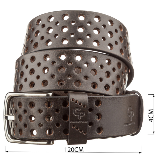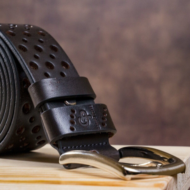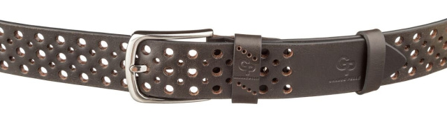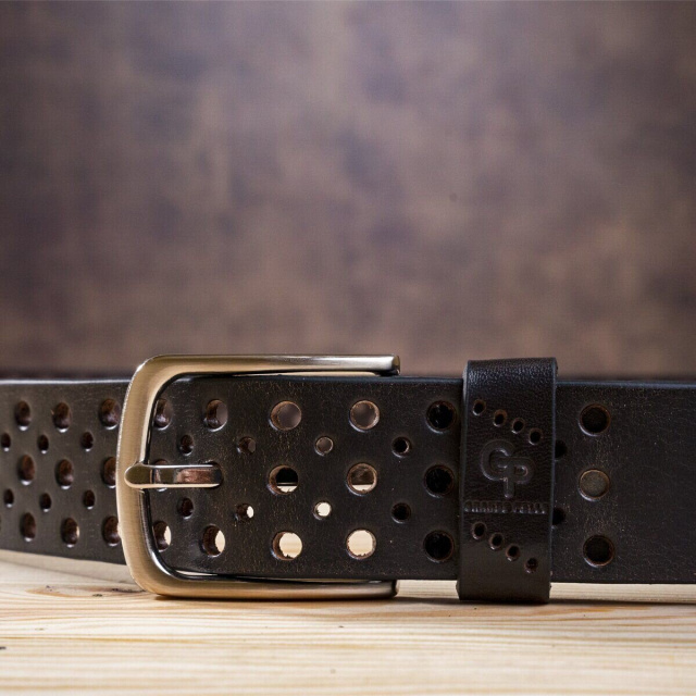 Стильный коричневый ремень из цельной итальянской кожи, модель подойдет как мужчинам, так и женщинам. Необычное полотно перфорировано отверстиями разных диаметров, что придает изделию изысканности и неповторимости. Производитель, использует исключительно импортную фурнитуру, которая не темнеет, не царапается и не вызывает аллергии.
