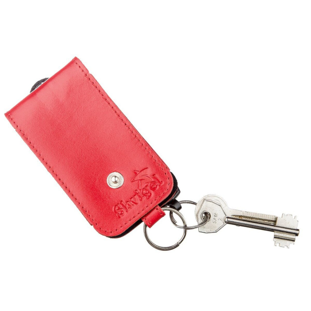 Кожаная ключница компактных размеров из натуральной кожи. Закрывается на кожаный хлястик и кнопку. В модель помещаются ключи стандартных размеров. При желании ключницу можно открыть одной рукой. Такой маленький, но очень необходимый аксессуар защитит ваши карманы от дыр. Яркий цвет изделия не оставит равнодушной ни одну девушку.
