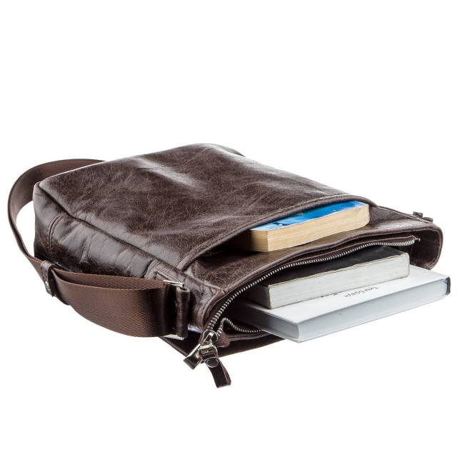Неординарная сумка для мужчин, в которой интересно сочетается коричневый цвет натуральной кожи и черный цвет текстильных элементов. Если хотите придать своему стилю оригинальности и уникальности, но при этом не забыв о качестве, то стоит приобрести этот аксессуар.
