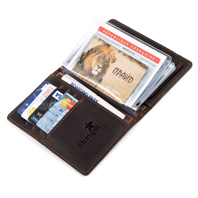 Многофункциональная кожаная обложка, из натуральной винтажной кожи, защитит Ваши документы от потертостей, грязи и других внешних факторов. Данный аксессуар является превосходным решением для подарка мужчине к любому празднику.