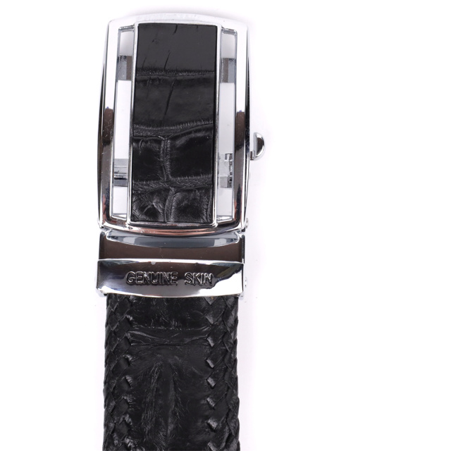 Стильный ремень из натуральной кожи крокодила. Аксессуар изготовлен на основании из гладкой телячьей кожи, в качестве дополнительной отделки по внешнему краю аксессуара сделана оплетка из гладкой кожи под цвет ремня. Изделие оборудовано съемной автоматической пряжкой, которая декорированная вставкой, из натуральной кожи крокодила. Изделия из кожи крокодила всегда считались большой роскошью, так как в мире не так уж много компаний, которые занимаются выделкой такой кожи, поскольку этот процесс действительно чрезвычайно трудоемкий. Идеальный подарок для людей, которые любят все дорогое и качественное. Ремень универсальный, его можно носить как под джинсы, так и под брюки. Каждое полотно имеет уникальный, не повторяющийся узор, поэтому, покупая ремень из кожи крокодила, вы можете быть полностью уверенны в том, что второго такого ремня нет в природе.