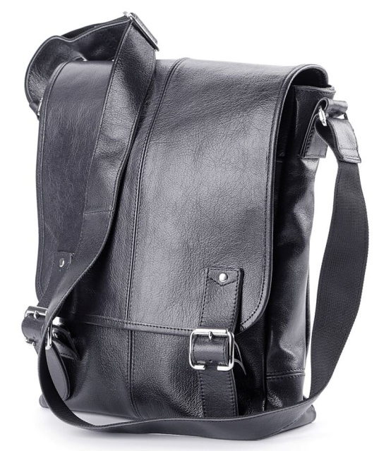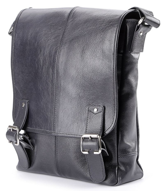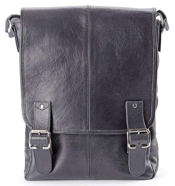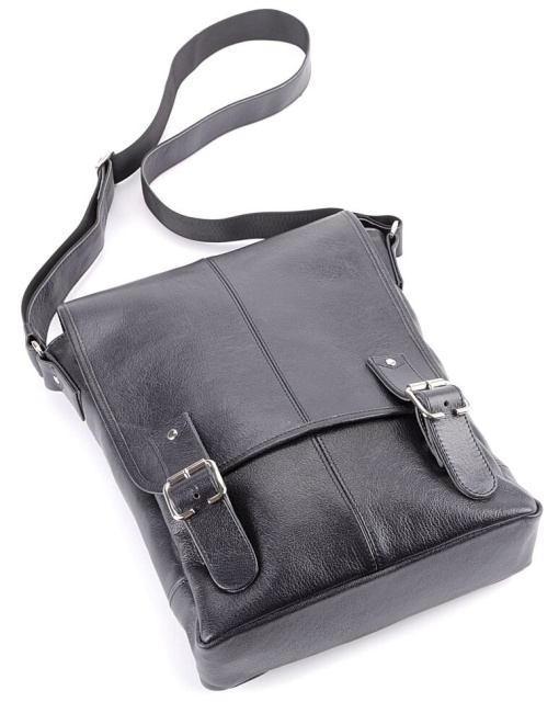 Большая кожаная мужская сумка высочайшего качества. Аксессуар выполнен из кожи черного цвета. Кожа мягкая, приятная на ощупь. Цвет фурнитуры: серебро. Сумка аккуратно прошита сверхпрочной нитью черного цвета. На задней внешней стороне аксессуара расположено отделение на молнии. Данная модель носиться через плечо. Плечевой ремень выполнен в комбинации натуральной кожи и прочного текстильного материала. Сумка закрывается при помощи клапана и 2-х кожаных хлястиков на магнитных кнопках, а также молнией. Под клапаном находится вместительный накладной карман. Подкладка выполнена из прочного текстильного материала черного цвета.