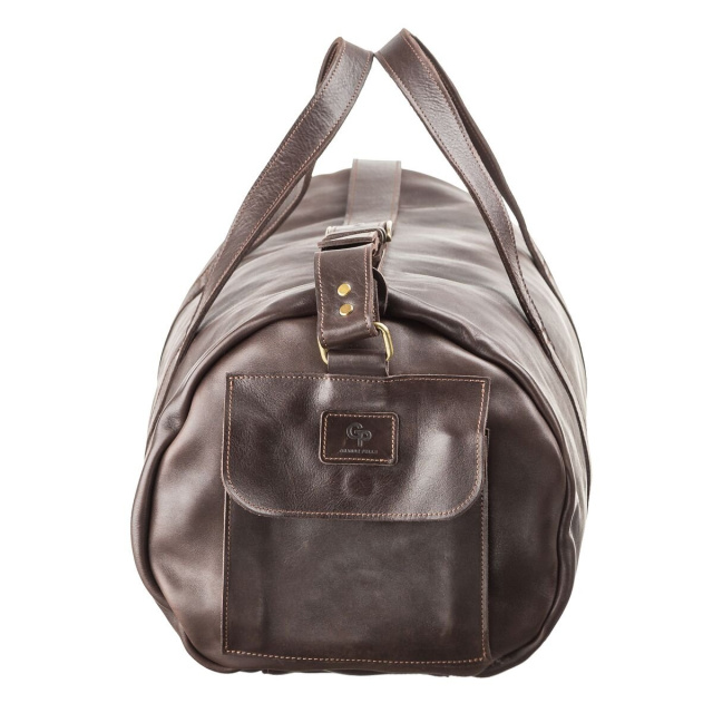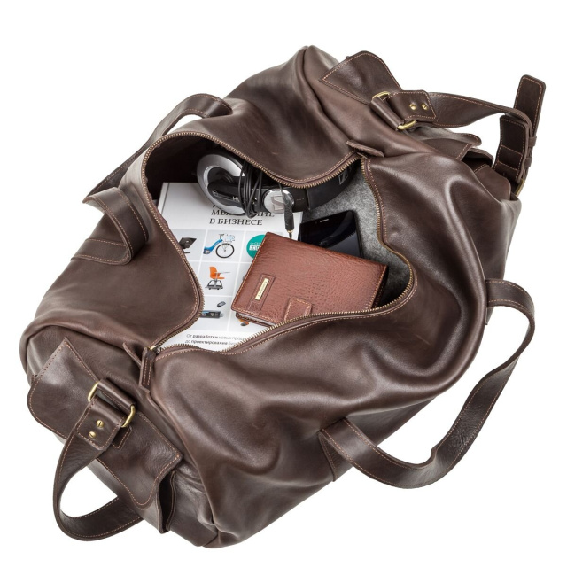Вместительная дорожная сумка выполнена исключительно из цельной толстой, качественной, гладкой кожи.