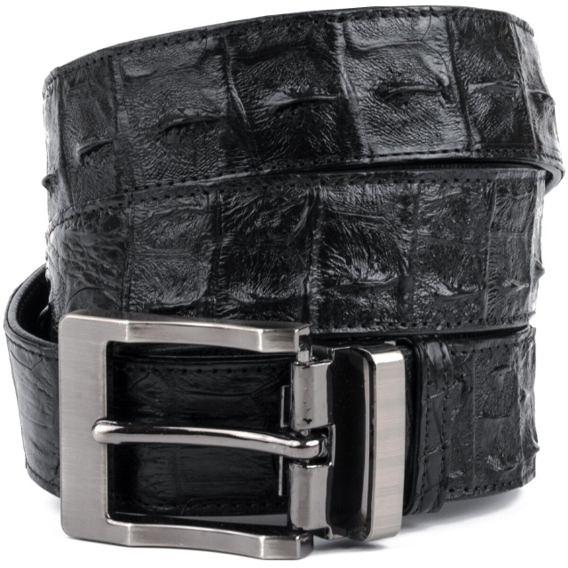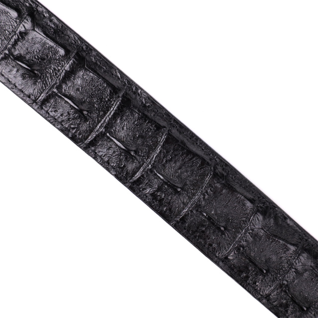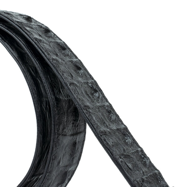 Джинсовый ремень из натуральной кожи крокодила. Изделие дополнено пряжкой в классическом стиле. Изделия из кожи крокодила всегда считались большой роскошью, так как в мире не так уж много компаний, которые занимаются выделкой такой кожи, поскольку этот процесс действительно чрезвычайно трудоемкий. Идеальный подарок для людей, которые любят все дорогое и качественное. Каждое полотно имеет уникальный, не повторяющийся узор, поэтому, покупая ремень из кожи крокодила, вы можете быть полностью уверенны в том, что второго такого ремня нет в природе.