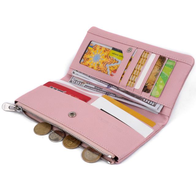 Новая модель кошелька с боковым кармашком на молнии для мобильного телефона или других личных вещей. Нежный розовый цвет добавит вам легкости. Ваш образ с таким кошельком станет более женственным. Кошелек выполнен из 100% натуральной кожи китайского производства. Функционал модели представлен тремя карманами для купюр, ячейками для кредиток. Закрывается кошелек на кнопку. Укомплектована модель в фирменную коробку белого цвета. Кожаный вертикальный кошелек доступен на нашем сайте в разных цветах. Заказывайте у нас по самой доступной цене.