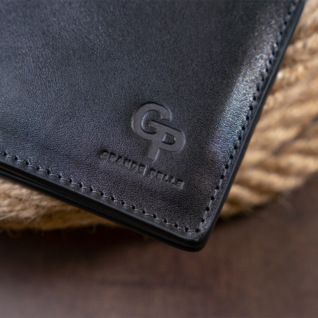 Горизонтальное портмоне с минимальным дизайном и в дорогой глянцевой коже. Изделие имеет самый необходимый функционал для повседневной жизни. Аксессуар подойдет для солидных мужчин, которые ценят практичность в аксессуарах. Удобно лежит в руке и помещается в карман брюк. Закрывается портмоне на магниты. В производстве аксессуара использовалась только крепкая фурнитура европейского качества. В комплекте к аксессуару фирменная картонная коробка. На лицевой стороне аксессуара ровная строчка. Кожаное портмоне - лучший подарок для современного мужчины.