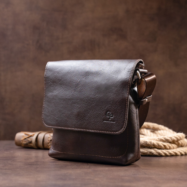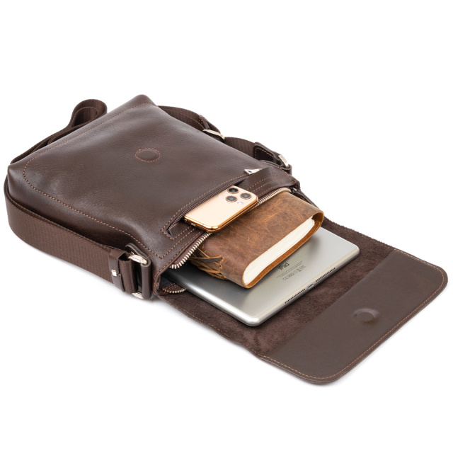 Сумка мессенджер в гладкой коже GRANDE PELLE 11334 Шоколадная