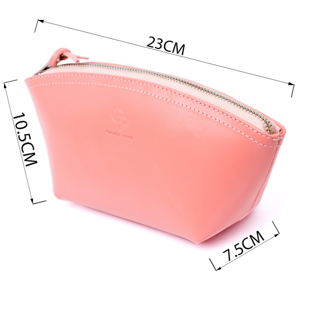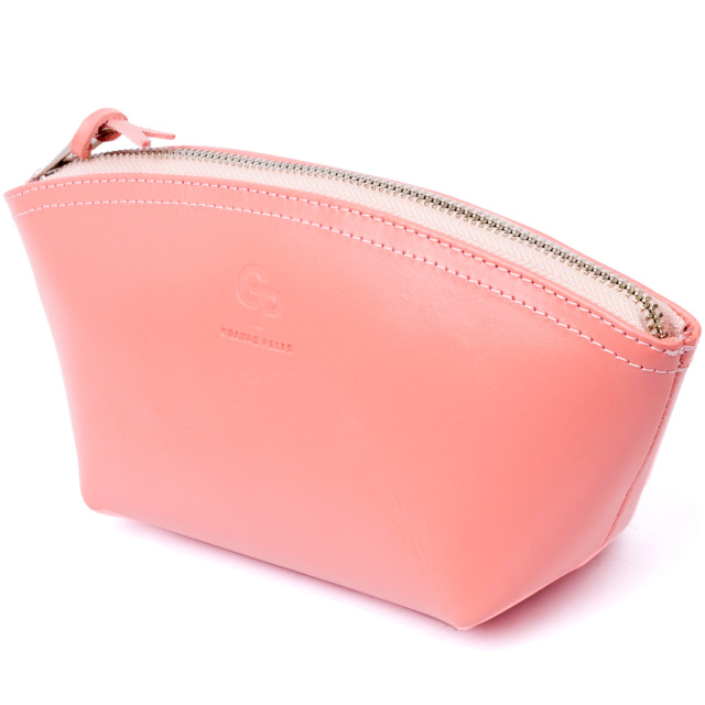 Вместительная женская косметичка из натуральной итальянской кожи нежного пудрового цвета. Аксессуар закрывается на молнию. В пудровом цвете изделие смотрится очень нежно и женственно. Такая косметичка добавит вам легкости и не оставит равнодушной ни одну девушку. Внутри косметички - автономное зеркальце. С такой косметичкой вам будет удобно отправляться в путешествие и просто хранить личную косметику. В нее с легкостью поместится ваша декоративная косметика, салфетки, гель для рук, маленькие духи. Аксессуар упакован в войлочный чехол. Такая косметичка станет прекрасным подарком для любой девушки. А в путешествии такой аксессуар просто идеальная находка.