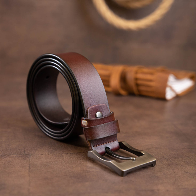 Ремень из натуральной кожи – must have для каждого мужчины. Стильный коричневый цвет цвет делает модель особенно привлекательной. Массивная, плотная пряжа подчеркнет правильность вашего выбора. Ремень не останется незамеченным окружающими. При желании вы можете отрегулировать длину ремня – достаточно раскрутить болт и обрезать лишнюю часть. Ремень будет отличным подарком для любого мужчины. В нашем магазине вы можете приобрести подарочную упаковку. Ремень подойдет для мужчин, которые ценят высокое качество и классику.