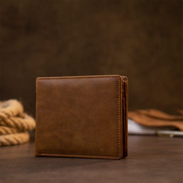 Тонкое компактное матовое портомне из натуральной кожи без застежки. Изделие имеет коричневый цвет с рыжим оттенком. Внутри достаточно ячеек для кредиток. Изделие продумано для современного человека. Который отдает предпочтение карточкам и носит минимум налички. Портмоне поместится в маленькую сумку или карман брюк. Кошелек станет прекрасным подарком для ваших близких. Портмоне имеет весь самый необходимый функционал. Кошелек очень приятный на ощупь. Подойдет для тех, кто не любит больших аксессуаров.