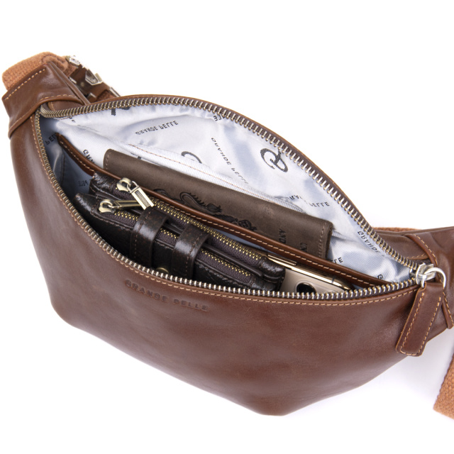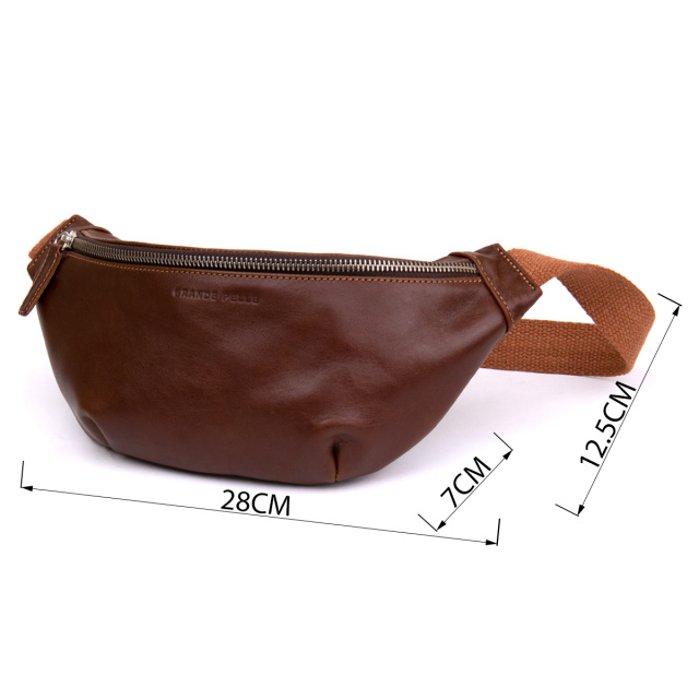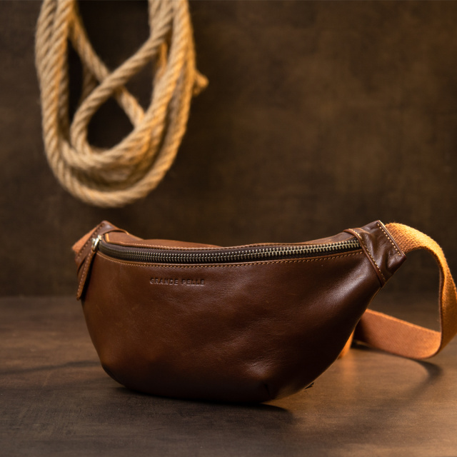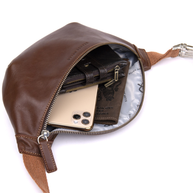 Современная мужская бананка из натуральной кожи станет дополнением образа практичного делового мужчины. Она выглядит очень солидно и дорого, благодаря красиво подобранной фурнитуре цвета серебра, элегантным ровным строчкам и качественной коже, которая переливается на солнце. Внутри - качественная подкладка серого цвета. На лицевой стороне аксессуара тиснение бренда. Сумочка упакована в качественный фирменный войлочный чехол. Размеры сумки указаны: ширина - по тыльной стороне от начала и до конца ремешка, высота - по тыльной стороне и глубина - сверху. Поясная сумка станет прекрасным подарком для ваших близких.