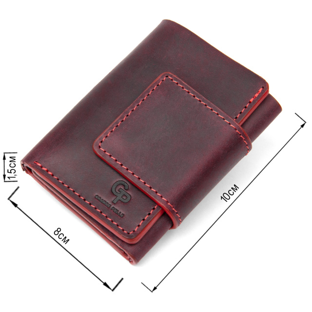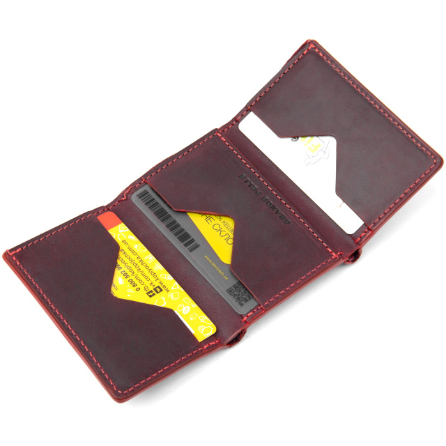 Практичное и очень стильное портмоне из натуральной кожи в элегантном бордовом цвете. Имеет красивую фактуру с эффектом старины, что очень модно сегодня. Внутри есть 6 отдельных слотов для визитных и кредитных карт, а также одно вместительное отделение для банкнот. Упаковка – фирменный чехол.